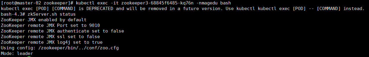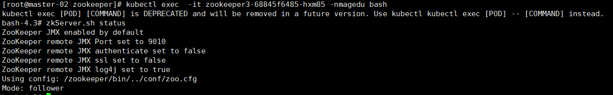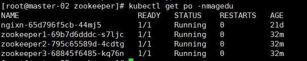 kubectl delete po zookeeper3-68845f6485-kq76n -nmagedu
