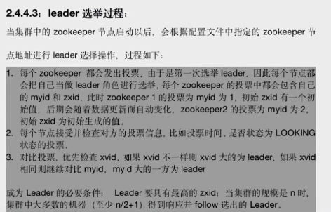 2起来了,此时选举有效,第一次选举时,没有zxid,一般按myid进行,谁的myid大,谁是leader ,所以一般是2或者是3为leader 1一般不是leader