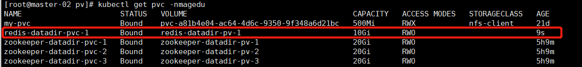 apiVersion: v1 kind: PersistentVolumeClaim metadata: name: redis-datadir-pvc-1 namespace: magedu spec: volumeName: redis-datadir-pv-1 accessModes: - ReadWriteOnce resources: requests: storage: 10Gi