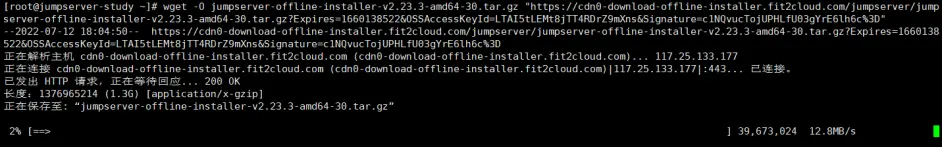 wget -O jumpserver-offline-installer-v2.23.3-amd64-30.tar.gz "https://cdn0-download-offline-installer.fit2cloud.com/jumpserver/jumpserver-offline-installer-v2.23.3-amd64-30.tar.gz?Expires=1660138522&OSSAccessKeyId=LTAI5tLEMt8jTT4RDrZ9mXns&Signature=c1NQvucTojUPHLfU03gYrE6lh6c%3D"