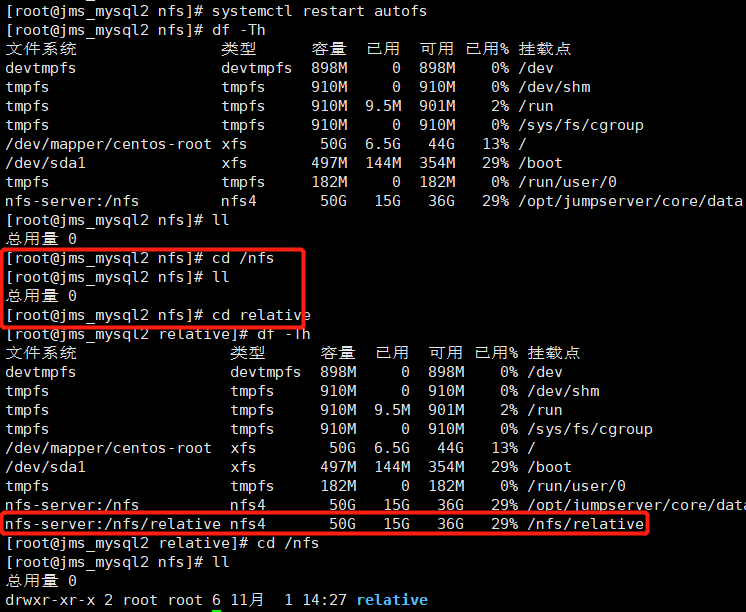 relative -fstype=nfs,rw,sync,no_root_squash 192.168.1.237:/nfs/relative