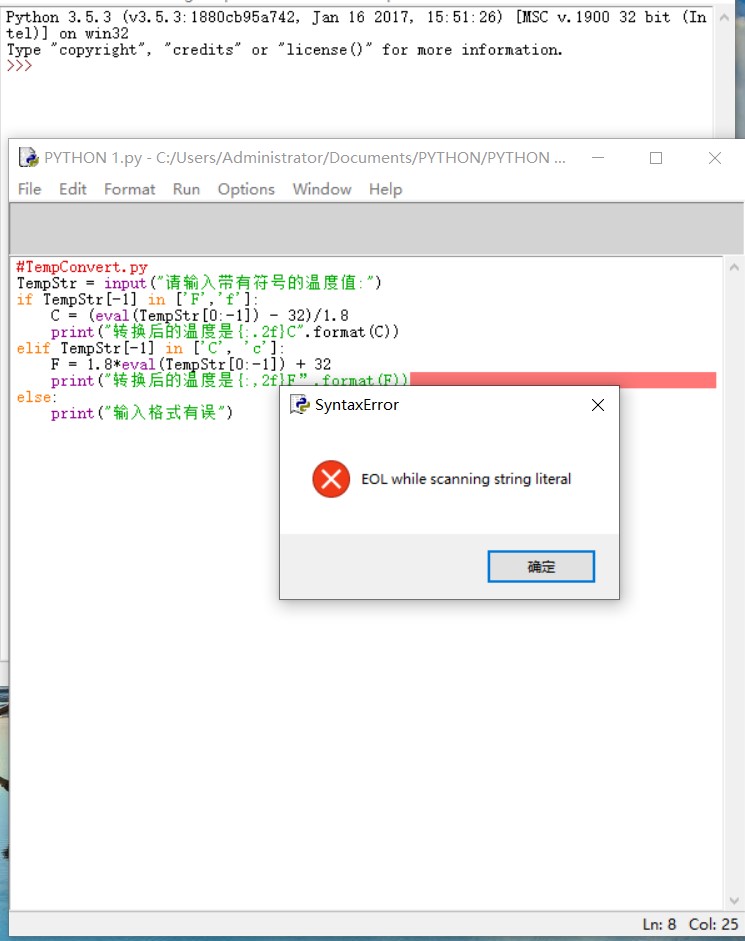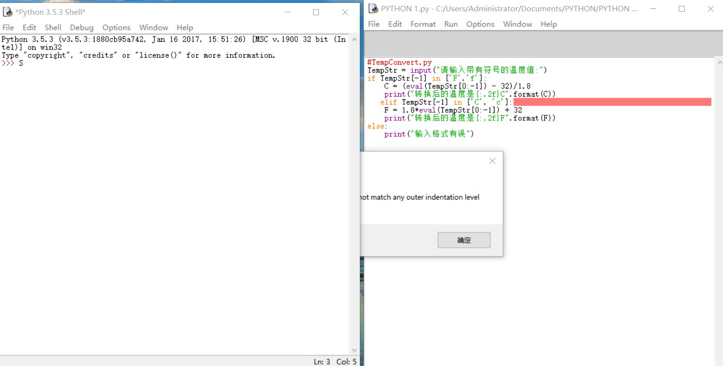 (2)(重点)人为按照以下情况分别把程序改错,尝试运行程序,并观察结果记录IDLE给出的错误提示,通过完网络查找资料,分析错误的含义。