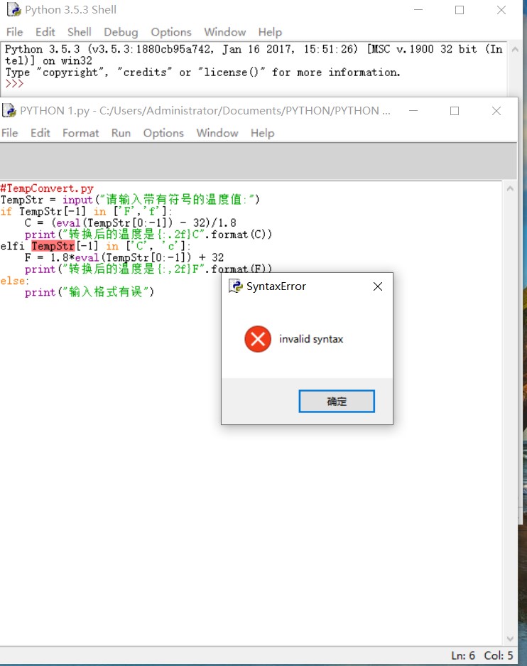 b) 把关键词elif 改为 elfi ,或者print 写错 print