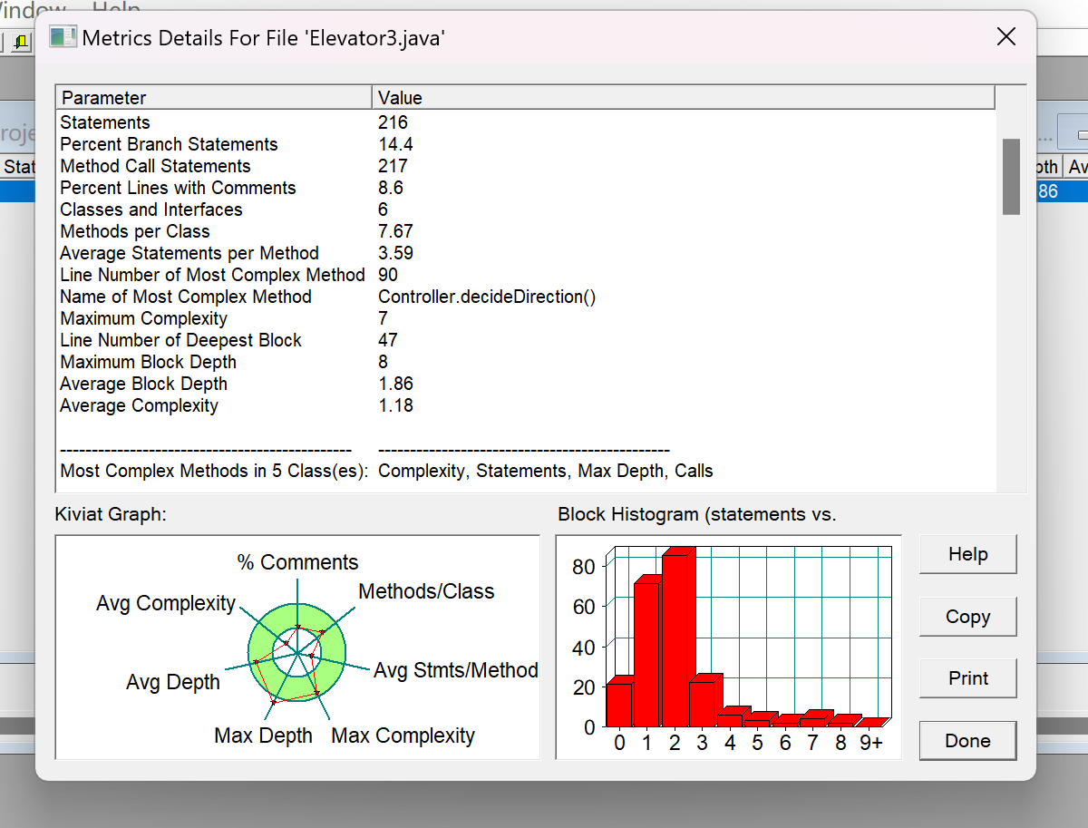 平均值:约 3.26,极端值:Controller.process() 方法超过 50 行,包含复杂逻辑和嵌套,因为我使用了过多的if/else语句,证明对于算法逻辑了解不透彻,在下次重构时,应拆分分支结构。 -