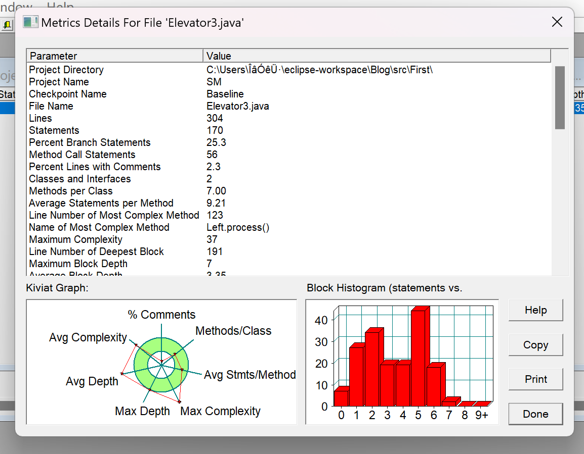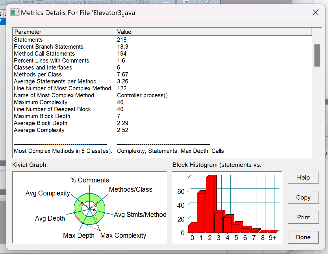 从下图中可以看到,我重新添加了注释,使comments%增加到了正常水平,同时重构了Controller.process(),使之最大复杂度从41降到了7,但是这里仍有不足,没有找到这个算法的最优写法,只是通过简单的if/else语句判断了所有情况,这个在后续作业中还会再考虑如何使代码更简洁高效。