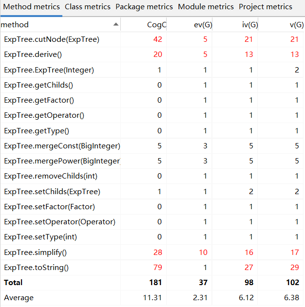 derive(),toString()方法都具有极高的复杂度,原因是没有考虑到Operator类可以实现求导和toString方法,并作统一接口在这三个函数中调用