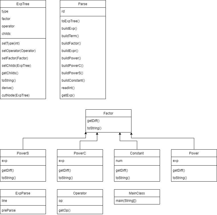 首先是没有认识到Factor Operator ExpTree三者存在的关系。Factor和Operator都是表达式树的节点类型,可以很自然地想到它们都是ExpTree的子类,采用枚举类型的方式来写,但是我并没有认识到这一点,选择把它们作为ExpTree节点的属性。