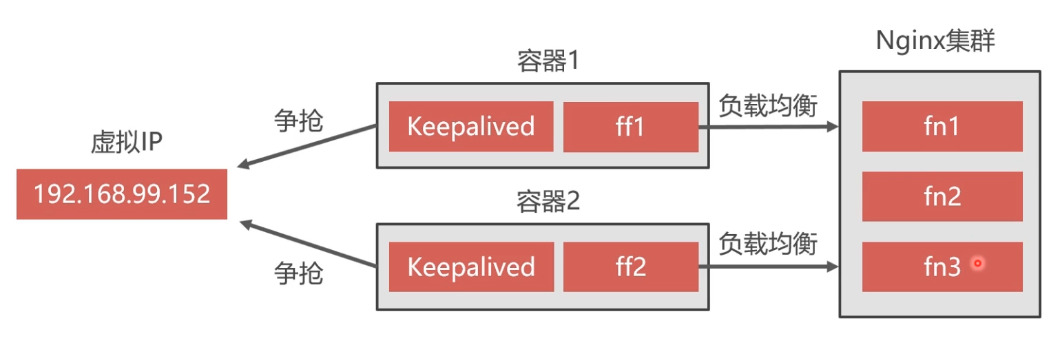 参考之前Haproxy双机热备的方案,仍然采用Keepalived和虚拟IP技术。建立两个Nginx容器并各自安装Keepalived,映射到同一宿主机虚拟IP上