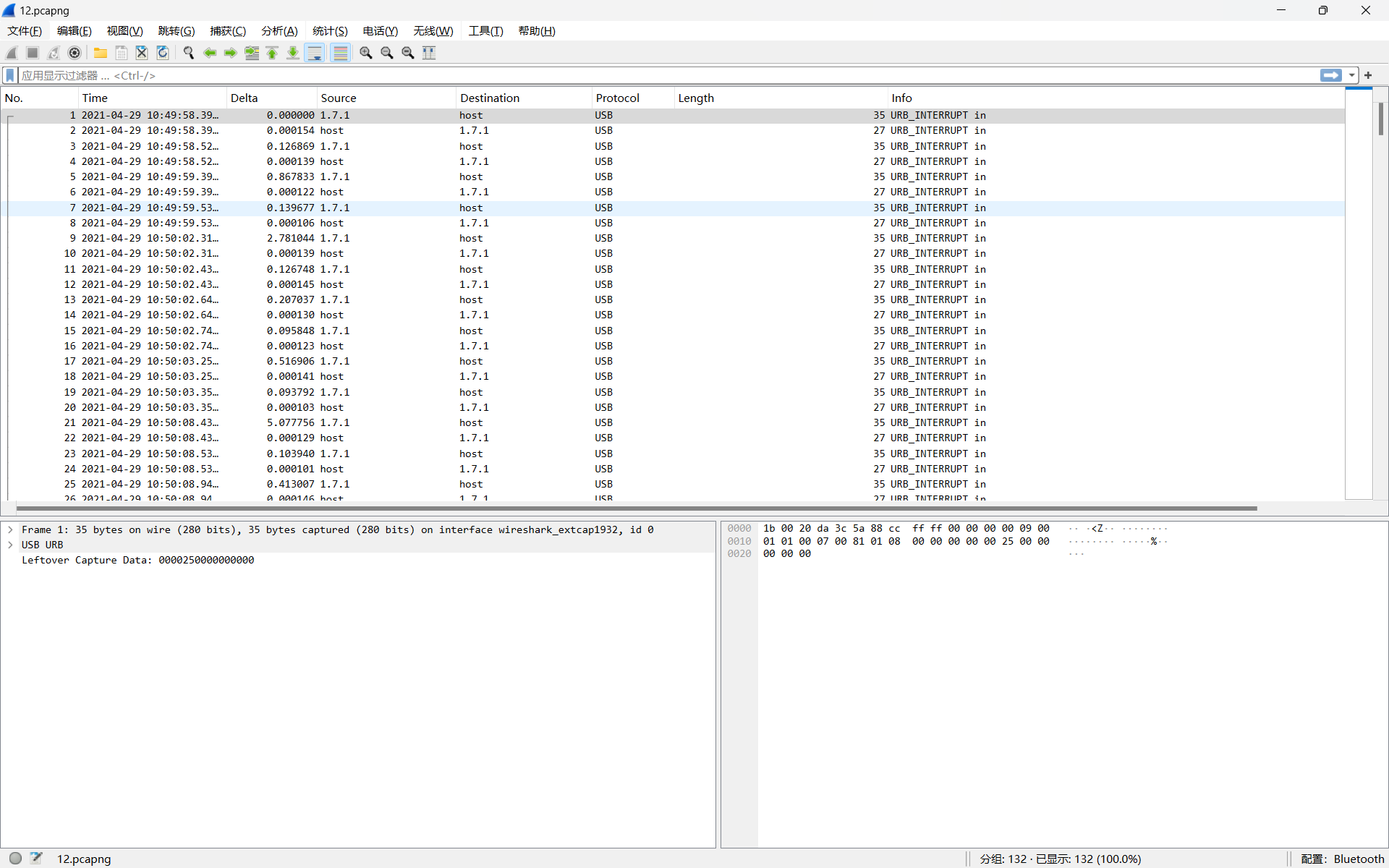 2、仔细一看1.7.1向主机传入的数据仅在第三字节不是0,判断为键盘流量