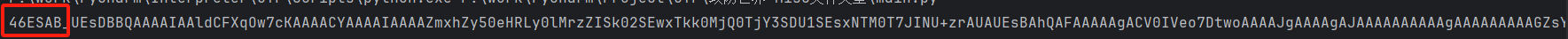 """46ESAB_UEsDBBQAAAAIAAldCFXqOw7cKAAAACYAAAAIAAAAZmxhZy50eHRLy0lMrzZISk02SEwxTkk0MjQ0TjY3SDU1SEsxNTM0T7JINU"""