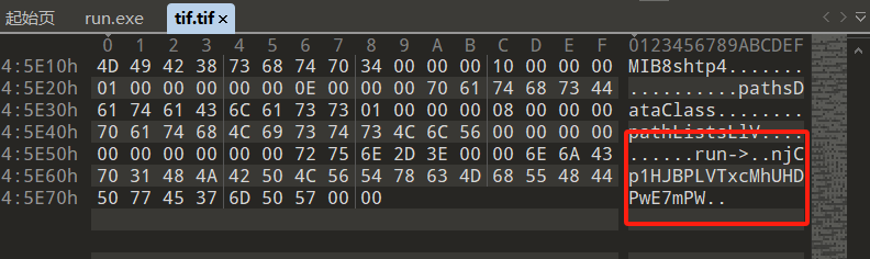 6、用16进制查看器打开tif,在末尾发现一段run 字段,这应该是需要脚本运行的初始数据