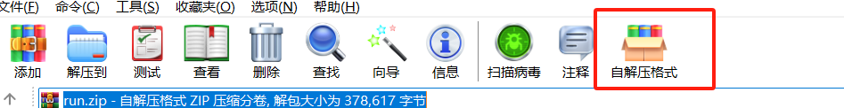 这道题比较奇特的地方在于存在自解压脚本命令,为此还去专门了解了以下