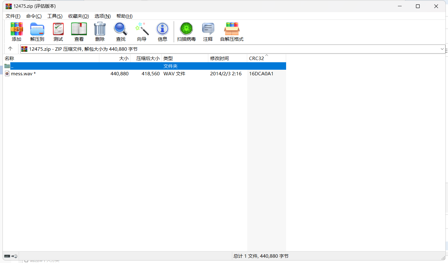8、查看最后一个压缩包,真加密,无注释,内层为一个音频文件