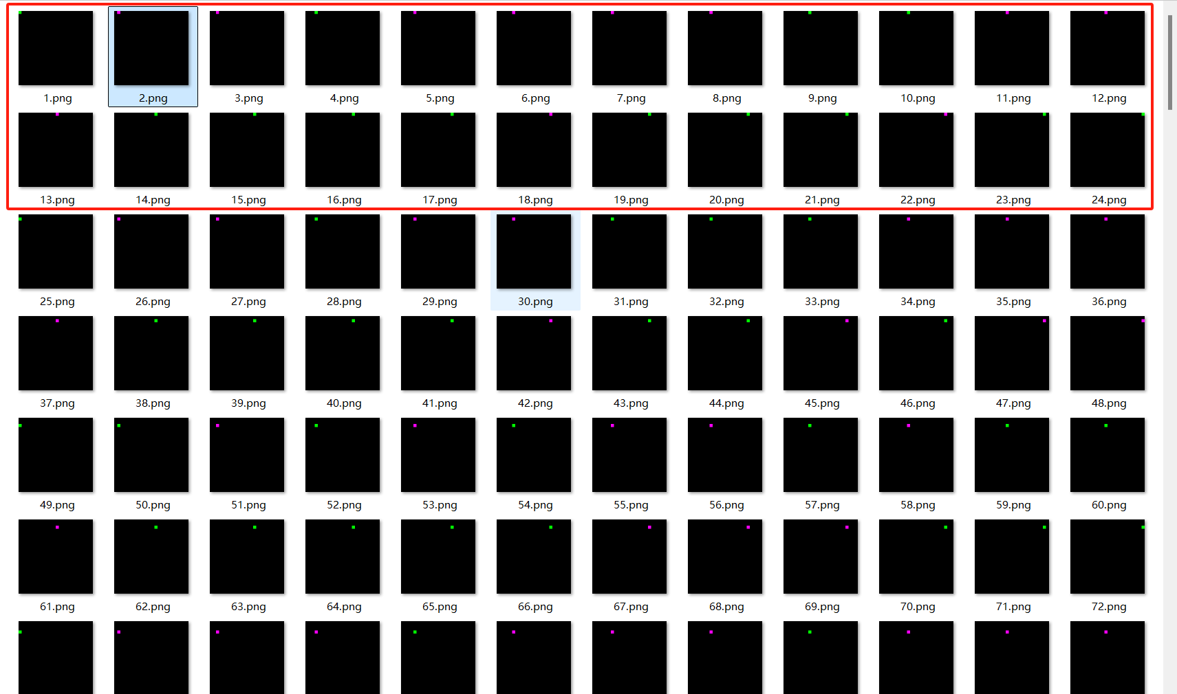 1、观察gif发现仅有粉、绿色块,初步推断可能分别代表二进制0和1,或者是需要把图片合并起来