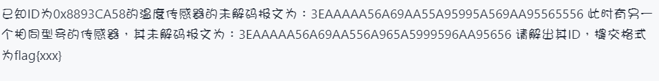 1、分析题目,首先要知道ID是哪几位应该是需要从第一个传感器的解码报文里去找,解码报文里应该有一段与传感器ID相同的文本,确定出ID的位置后用同样的解码方法解码第二个传感器的报文,提取出对应的ID