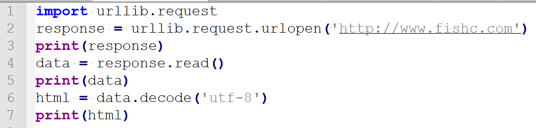 用type查看三个变量的类型,分别是:<class 'http.client.HTTPResponse'> <class 'bytes'> <class 'str'>