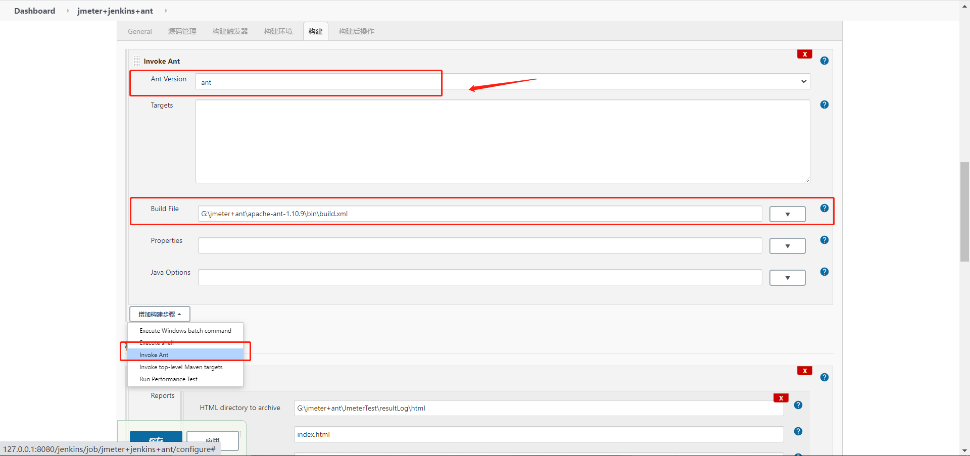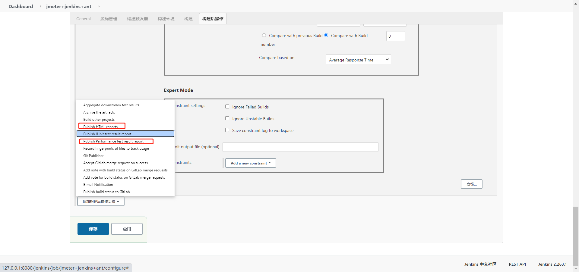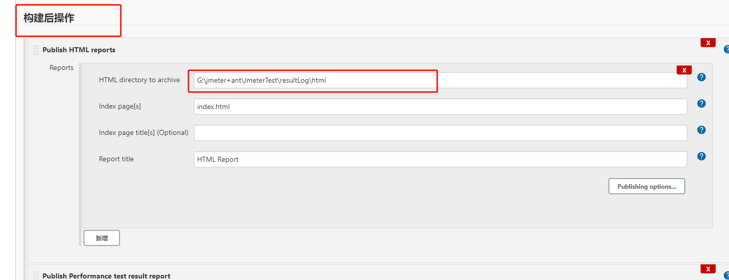 4.构建操作添加Publish HTML reports和Publish Performance test result report 也就是之前下载的2个插件