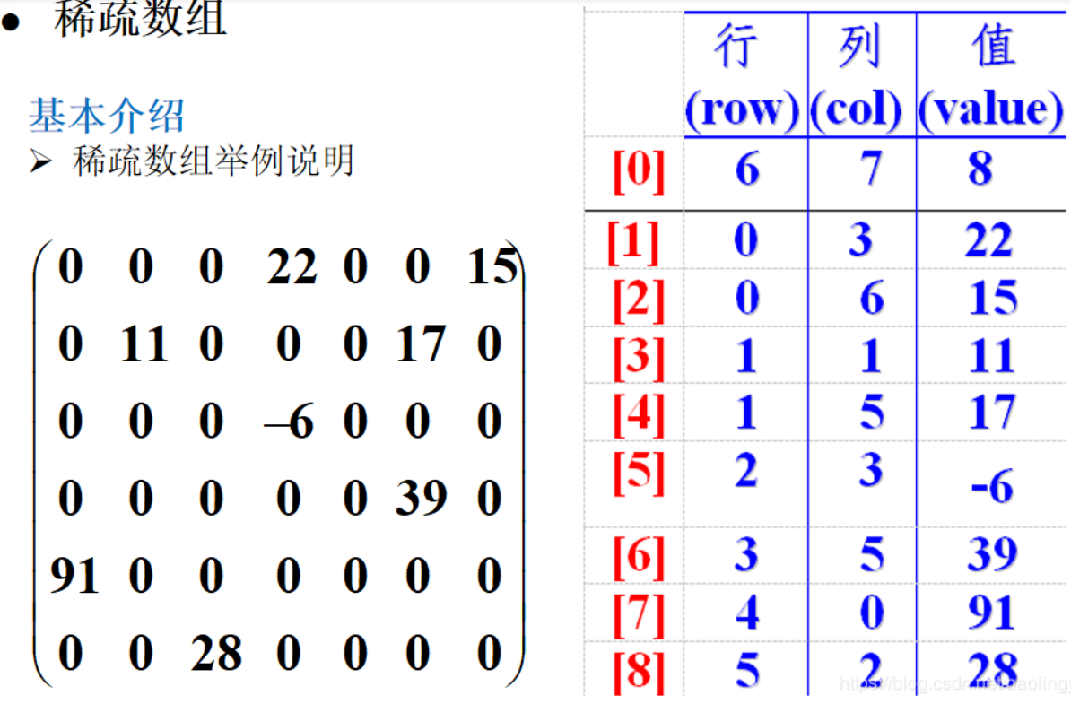 - 把具有不同值的元素的行列及值记录在一个小规模的数组中,从而缩小程序的规模
