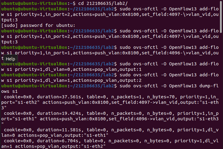- 能够通过命令行终端使用OVS命令操作Open vSwitch交换机,管理流表;