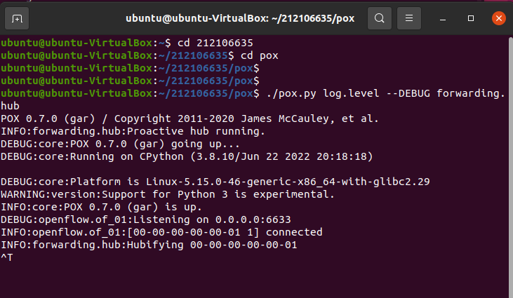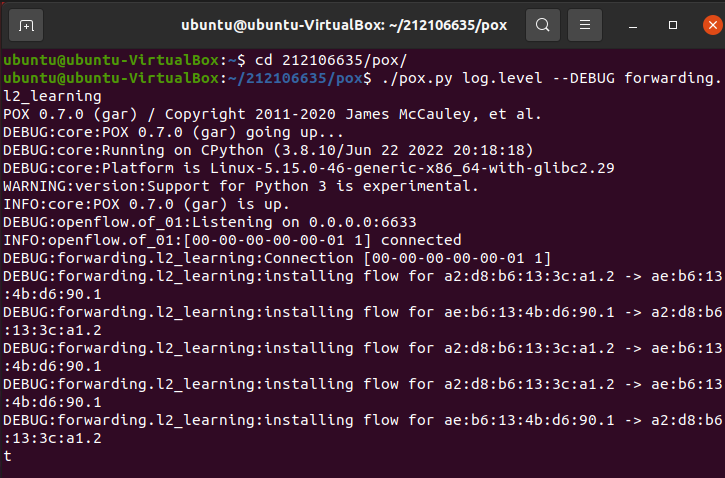 - 通过验证POX的forwarding.hub和forwarding.l2_learning模块,初步掌握POX控制器的使用方法;