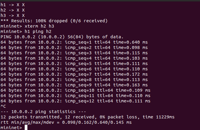 - 基础要求只需要提交h1 ping h2、h2和h3的tcpdump抓包结果截图,外加L2_learning模块代码流程图,其余文字请勿赘述;