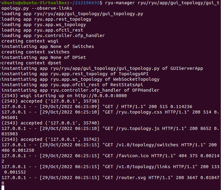 - 本次的ryu实践还算简单,根据PDF的指导可以正确的得到结果,但是图形化的界面有些问题,而且本地的网址始终打不开