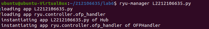 - 本次实验完成我学会了如何独立部署安装ryu控制器,对ryu控制器实现软件定义的集线器原理有了实践上的理解,初步掌握了使用ryu控制器的方法。但是只是一些皮毛,会在大作业中继续使用并深入学习。