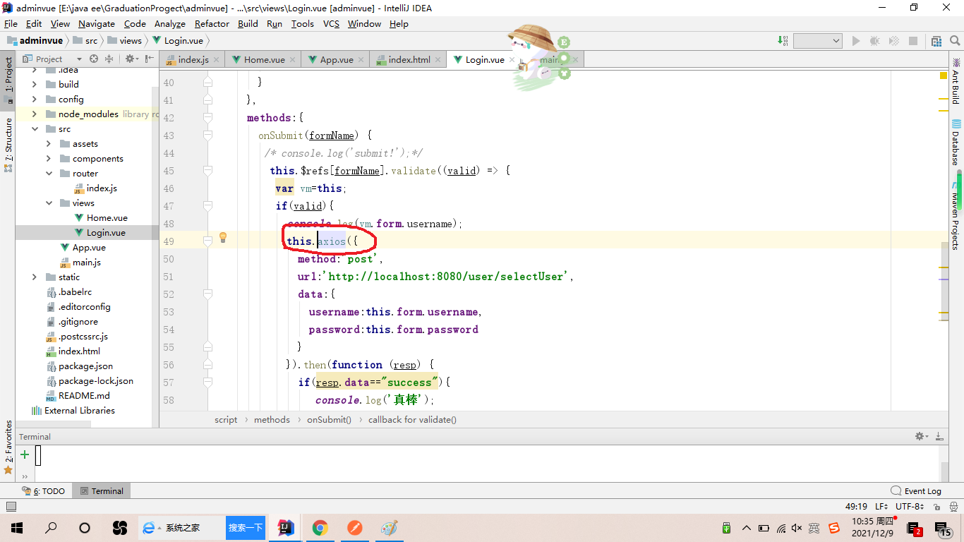 Vue向后台传送数据时出现如下问题:vue.esm.js?efeb:1906 TypeError: _this.axios is not a function