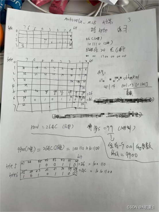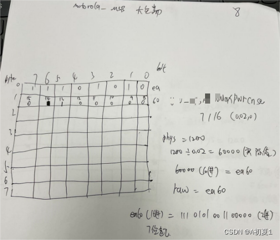 进入汽车行业 虽然是软件开发 但是对底层的信号传递还是很感兴趣的,深入的学习了一下CAN协议中提到的大小端内容。还挺有意思的。我抽几个信号进行学习推断。有很多信号的推断我直接附上手绘图片仅记录一下分析过程。