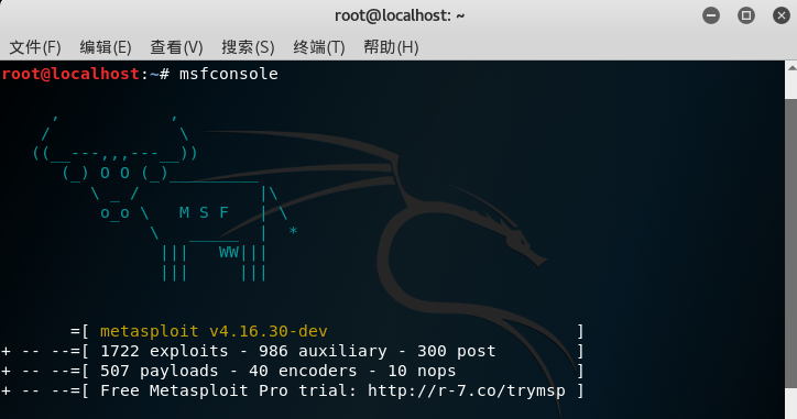 终端(Msfconsole),是Metasploit框架最受欢迎的用户接口,提供与用户交互式的输入,可以用它来做任何事情。 启动终端:在命令行里输入msfencode即可。