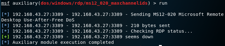 4、最后输入命令“run”,执行我们的auxiliary攻击模块: