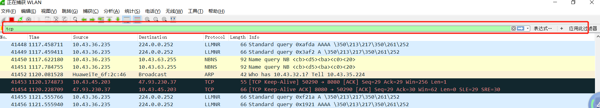 一种是显示过滤器,就是主界面上那个,用来在捕获的记录中找到所需要的记录