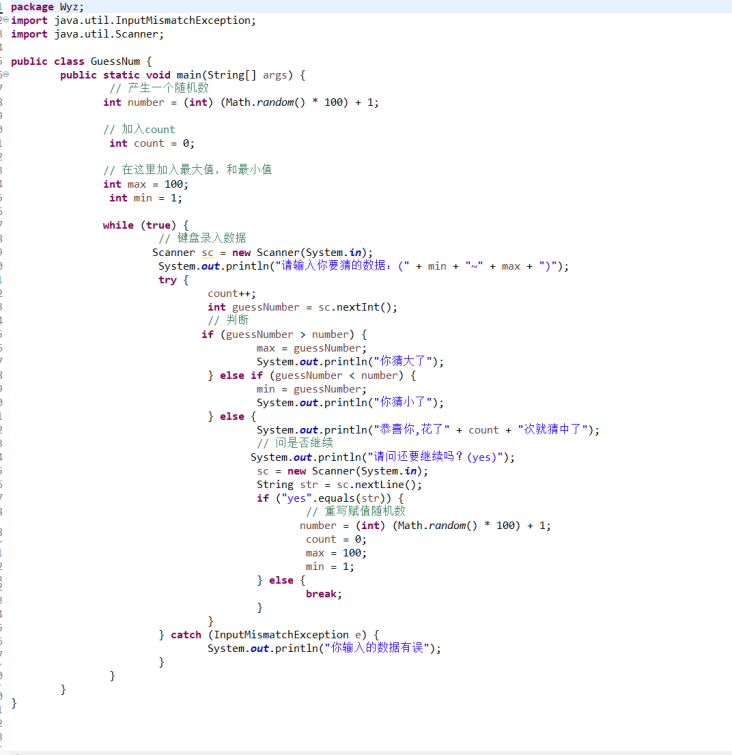 第二题,搭建Java程序框架。打开eclipse。建立项目。借助。Java提供的random类来产生一个随机数。记录玩家猜测的次数。