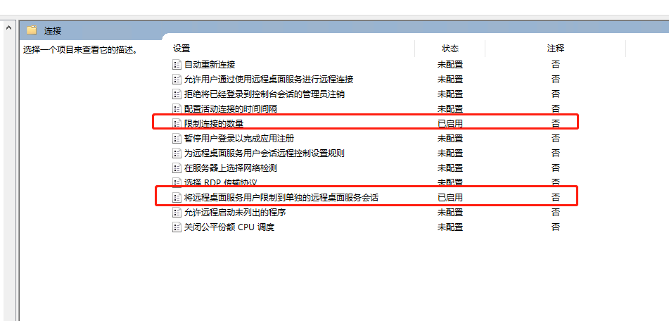 计算机配置-管理模板-windows组件-远程桌面服务-远程桌面会话主机-连接