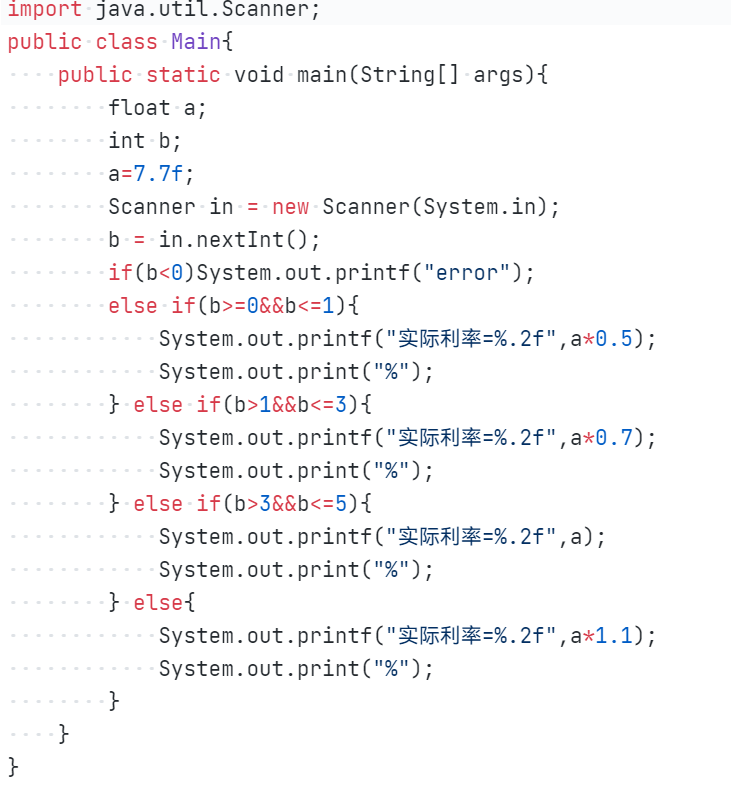 做题思路上直接使用if-else语句结构分别计算和输出各年份的实际利率。