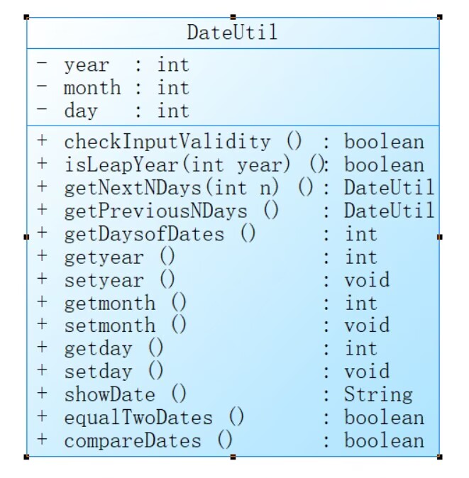 不足:在写求下一天方法的时候总是粗心大意,有时候会因为在月份最后一天的时候求下一天,忘记更新月份到下一月而出错等等还有许多这样类似的问题。