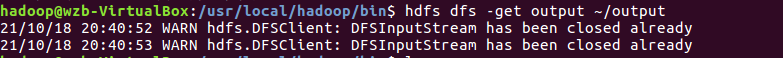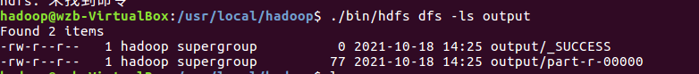 - 运行MapReduce示例作业,输出结果放在output目录下。