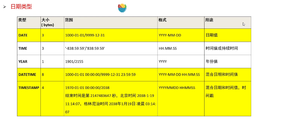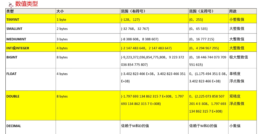 age DECIMAL(5,2),#有效位数最多5个,小数点后保留两位123.45