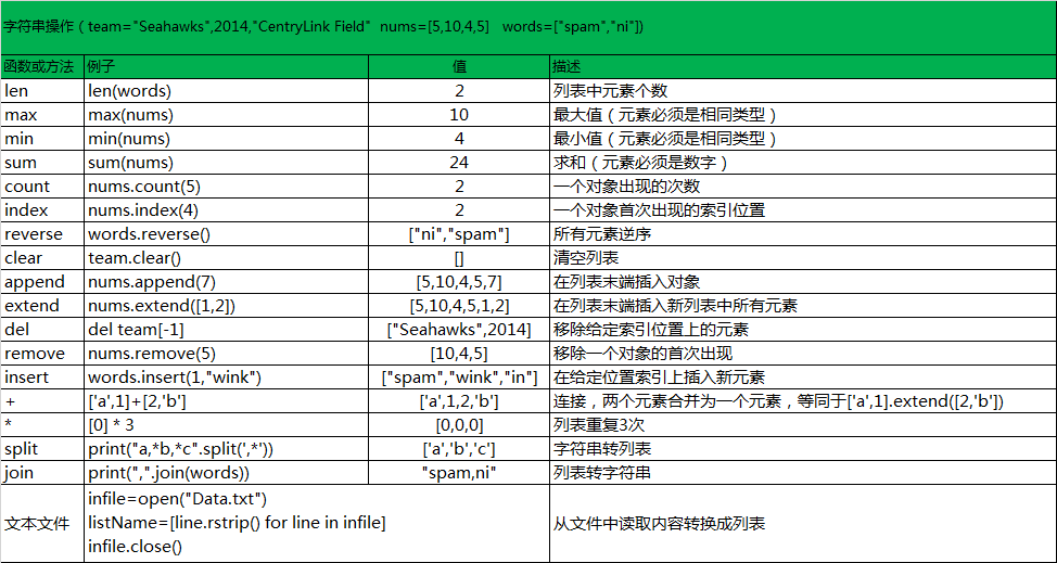 2)元组含有列表大部分方法,除append、extend、insert