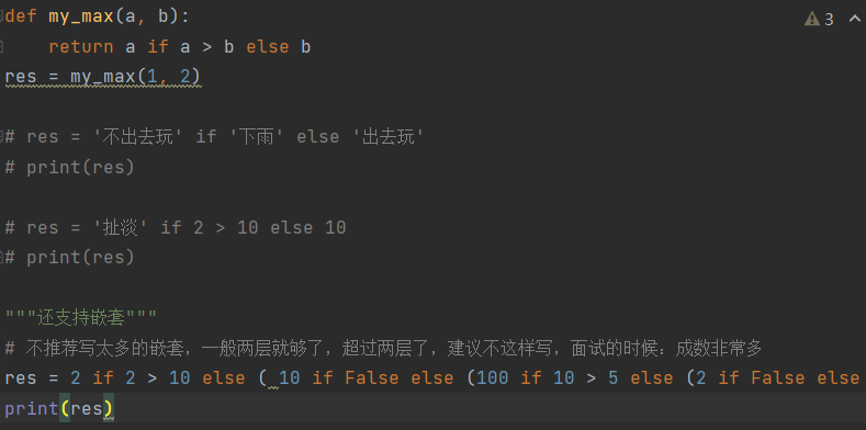res = 条件成立之后的结果 if 条件 else 条件不成立之后的结果