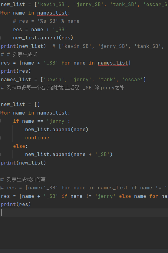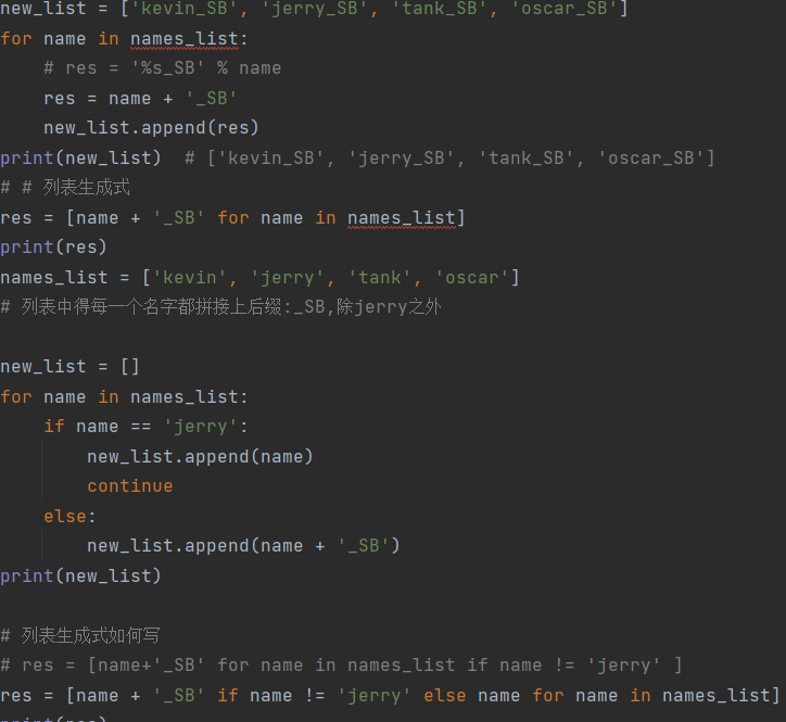 把列表中得每一个名字后面都拼上后缀_SB