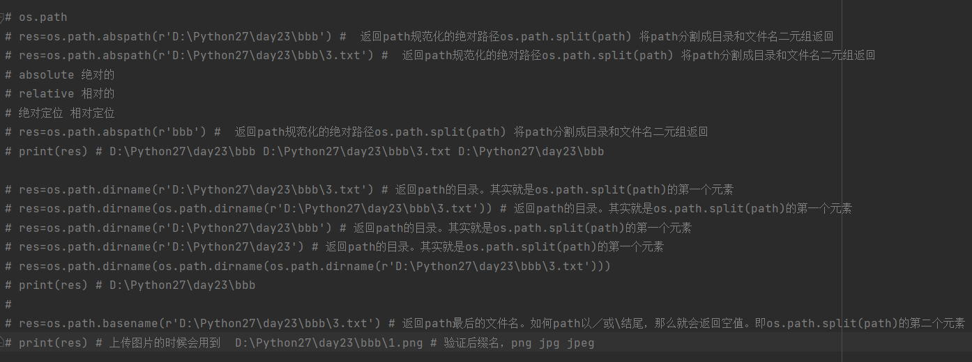 os.path.abspath(path) 返回path规范化的绝对路径os.path.split(path) 将path分割成目录和文件名二元组返回