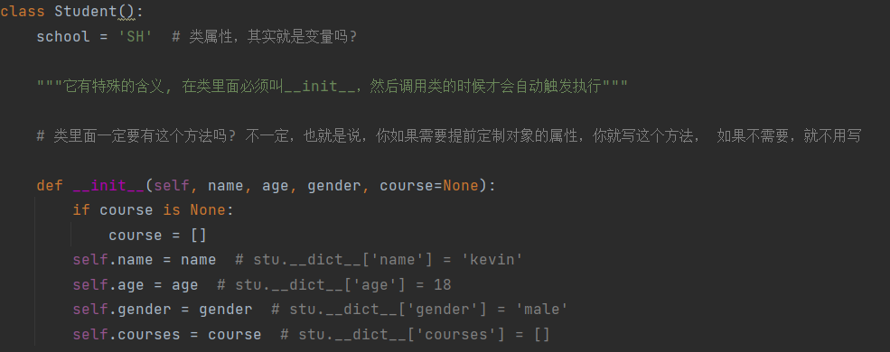 print(stu.__dict__) # {} 默认情况下调用类会得到一个空对象,其实就是一个空字典