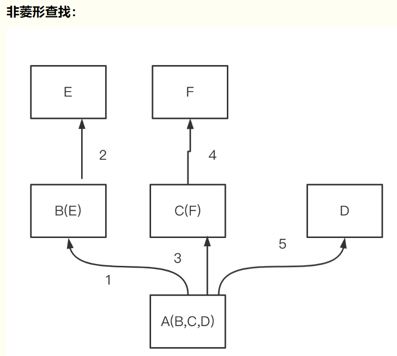 ps:在python3中都是新式类,所以多继承下的属性查找,如果属性找不到,就按照广度优先查询