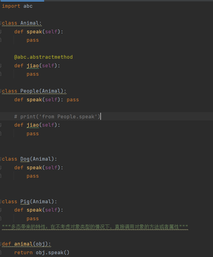 class Animal(metaclass=abc.ABCMeta): # 把animal类变成了抽象类