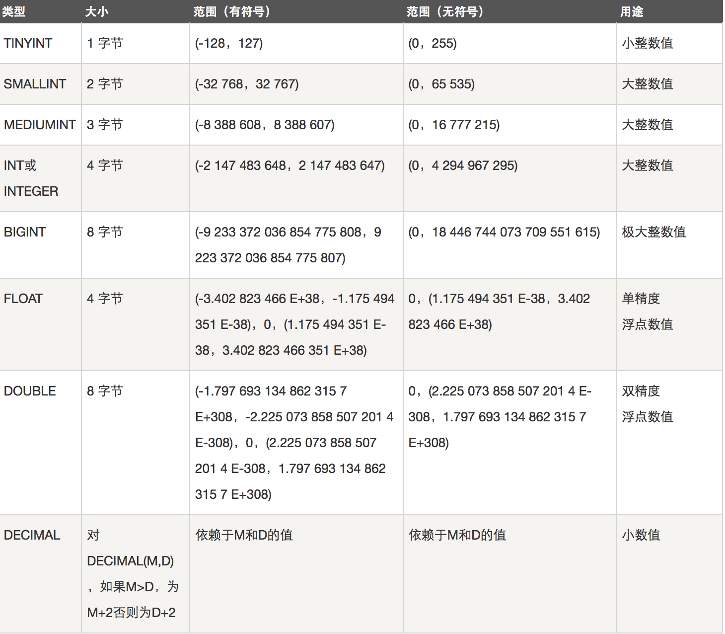 smallint:2个字节, 代表16位, 65536(0-65535) (-32768-32767)