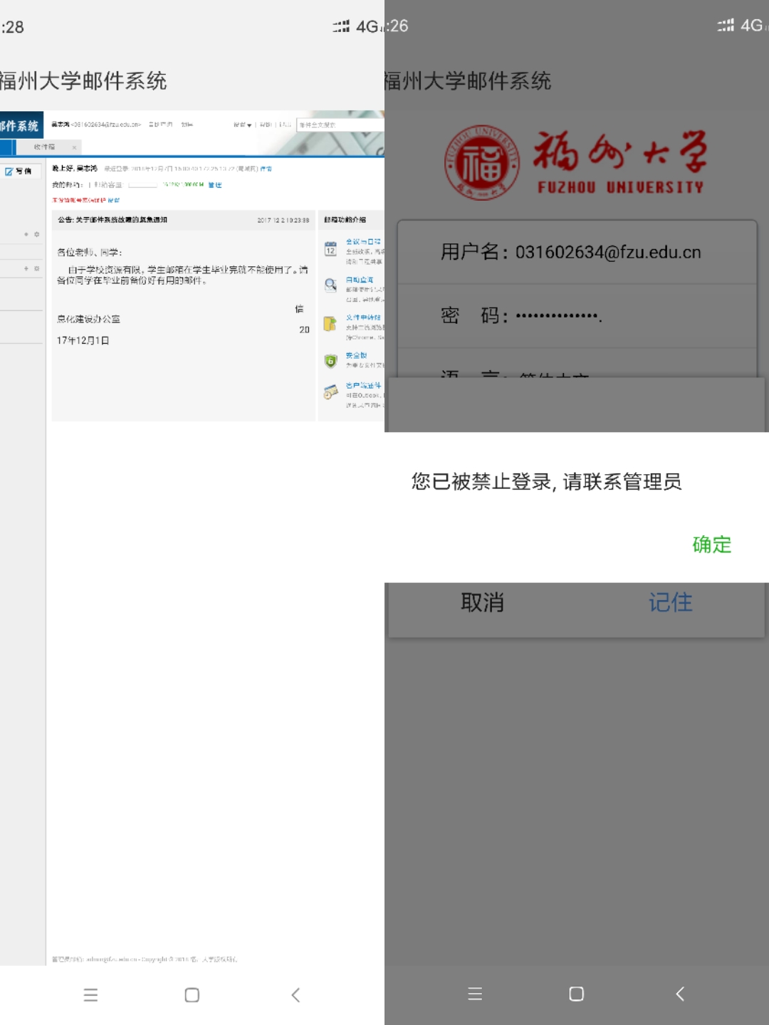 - bug 5:邮箱使用电脑版才可以登录,使用手机智能版提示账户被禁止登录