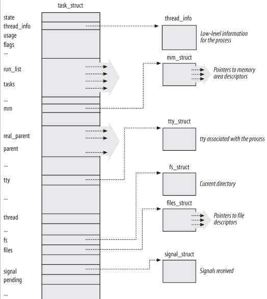 首先我们要知道,Linux是一个多任务多用户操作系统, 一个任务(task)就是一个进程(process)。每一个进程都具有一定的功能和权限,它们都运行在各自独立的虚拟地址空间。 它们是系统资源分配的基本单位,也是使用CPU运行的基本调度单位。那么,进程是什么呢?存放在磁盘上的可执行文件的代码和数据的集合称为可执行映象。当一个可执行映像装入系统中运行时,它就形成了一 个进程。而为了使系统有效的管理进程,当一个进程被创建时,系统就为该进程建立一个task_struct任务结构体,即:进程控制块(PCB),它容纳了一个进程的所有信息,是进程存在的唯一标志,也是系统实现进程调度的主要依据。当进程运行结束时,系统撤消该进程的任务结构体,其结构如下: