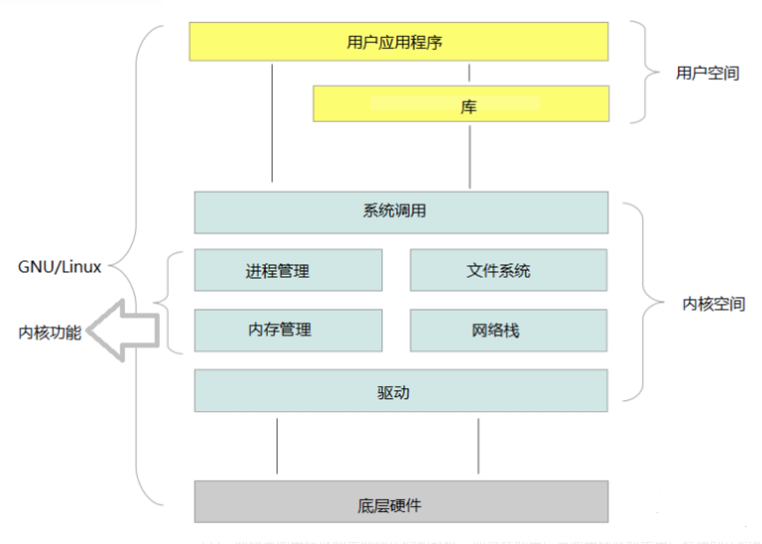 Linux系统主要由Linux内核和其他外部程序组成,其主要结构如下图所示:
