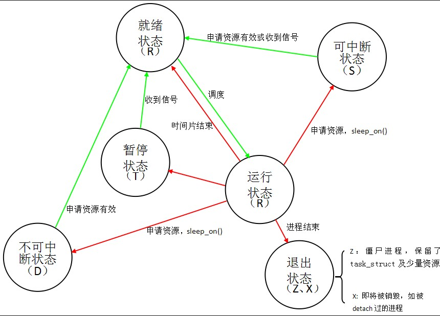 通常情况下,由于CPU的计算资源是有限的,某一时刻只能处理一个进程,故处理多个进程需要进行进程调度,进程调度下进程的状态如下所示: